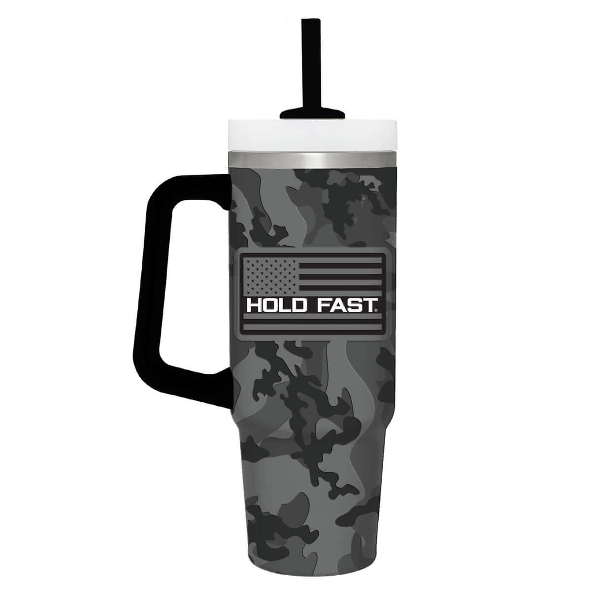 HOLD FAST® 30 oz Stainless Steel Mug With Straw - HF Black & Grey Camo