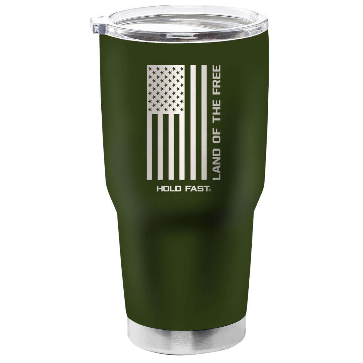 Declare your freedom with this handsome “Land Of The Free” 30 oz. Dual Wall Stainless Steel Mug in Military Green by HOLD FAST®. We live in the land of the free and home of the brave because of the men and women who, like Joshua, chose to stand and set their faces toward victory. This generous sweat-free tumbler keeps drinks piping hot or ice-cold for hours. It’s a practical vessel for home, work, or the car.
