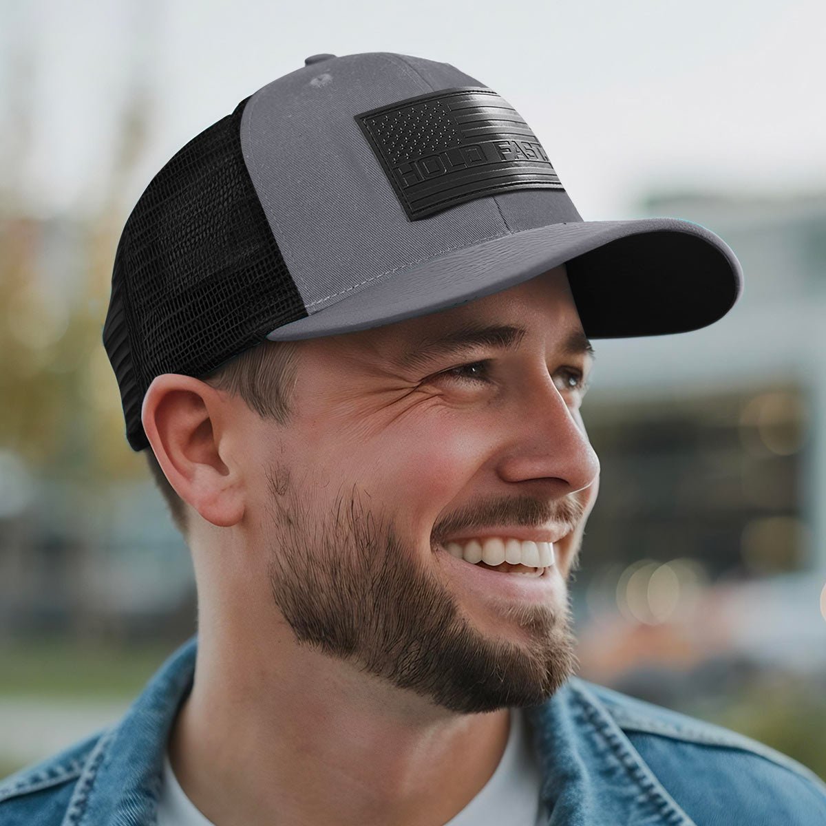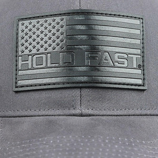 Clean, understated, and built to last, the “Black Stealth” Cap by Hold Fast® features a tonal embroidered flag patch for a subtle yet powerful statement. Designed for everyday wear, this classic-fit cap pairs durability with a minimalist look rooted in strength and conviction.