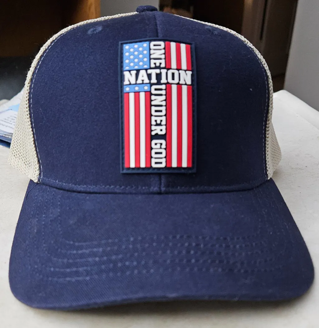 Proclaim your love for the Lord and our great nation in this classic “One Nation Flag” Cap by HOLD FAST® in Navy. As Americans, we enjoy the privilege of sharing our faith out loud. We can worship God, meet together at church, and pray anywhere and any way we want to. We are also proud of our heritage, and you can share this by wearing a One Nation Flag Cap.