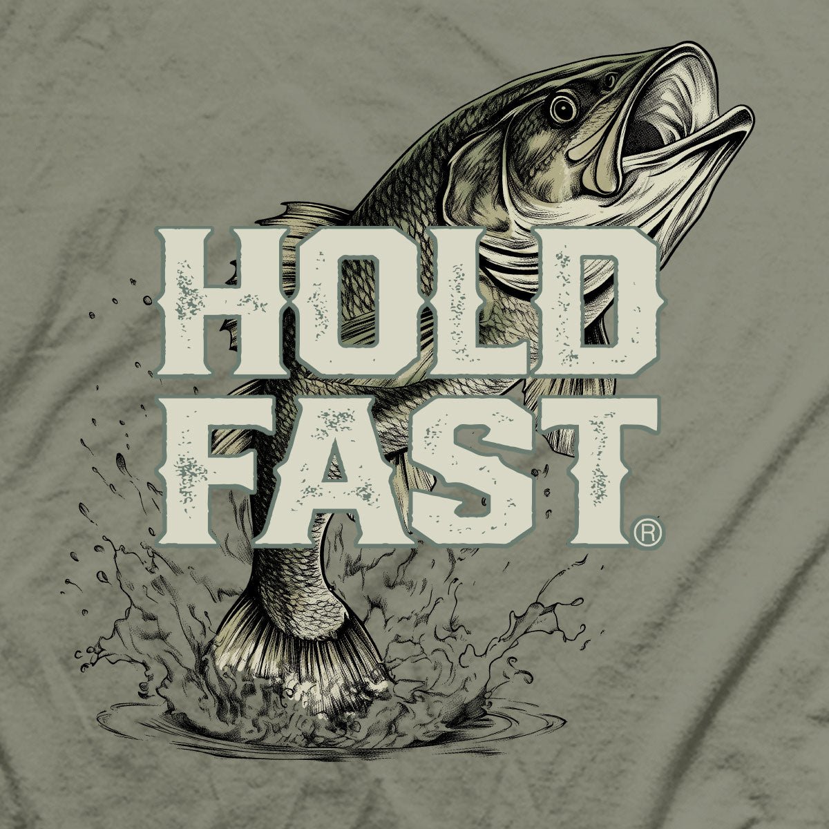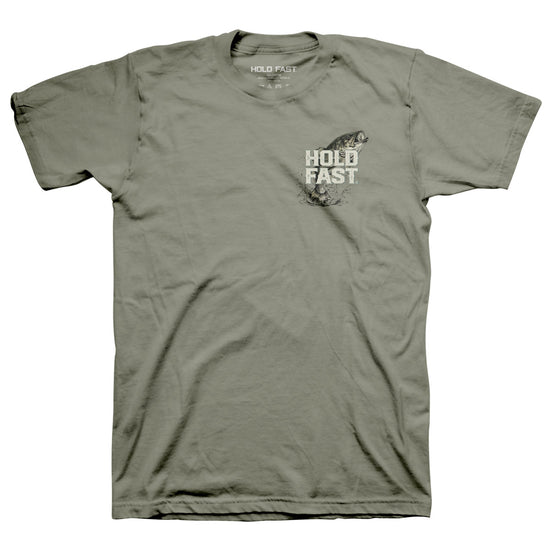 Cast your cares wide and your line deeper in this “Fishing” Hold Fast® Adult T-Shirt in Sage. With a bold graphic of a leaping bass and the power of Scripture on your side, this shirt is for men who know that real strength begins with surrender.