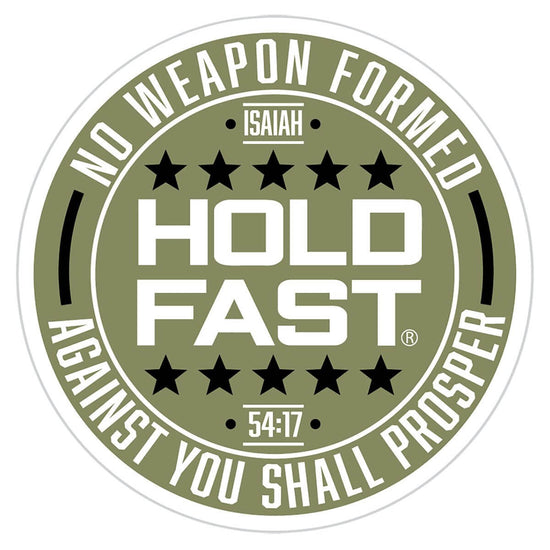 Walk with confidence when you display this tough “HF No Weapon” Sticker by HOLD FAST®. As you grow in faith, God is molding your character, building you up to fulfill the good plans He has for your life. Any guy can claim to be tough, but walking the walk is more than just words, and you are a person who puts character into action! These weather- and fade-resistant stickers are perfect for your car or bike, stainless tumbler, laptop, or anywhere you want to inspire yourself and others to keep the faith!