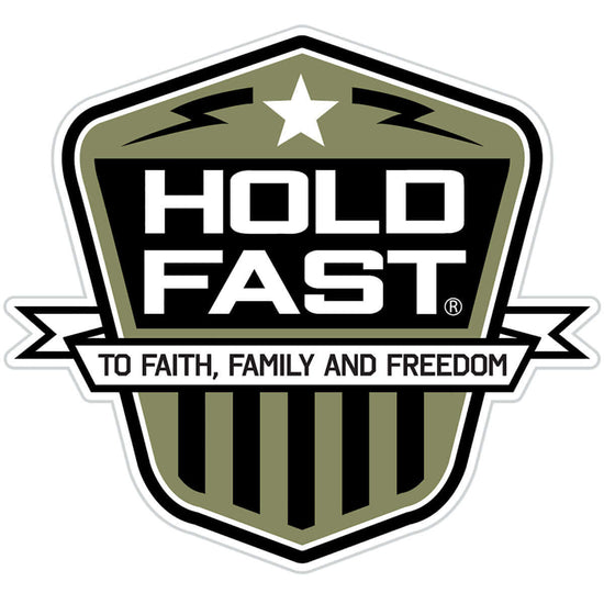 Faith in God gives us courage, strength, and backbone. We’re not in this alone; God goes with us, and He is faithful to hold us in His mighty right hand. We can take courage and set aside fear when we take up the cross and choose to follow Jesus! The HOLD FAST® logo against a strong shield is a reminder that you find strength not only in faith, but in our great nation.